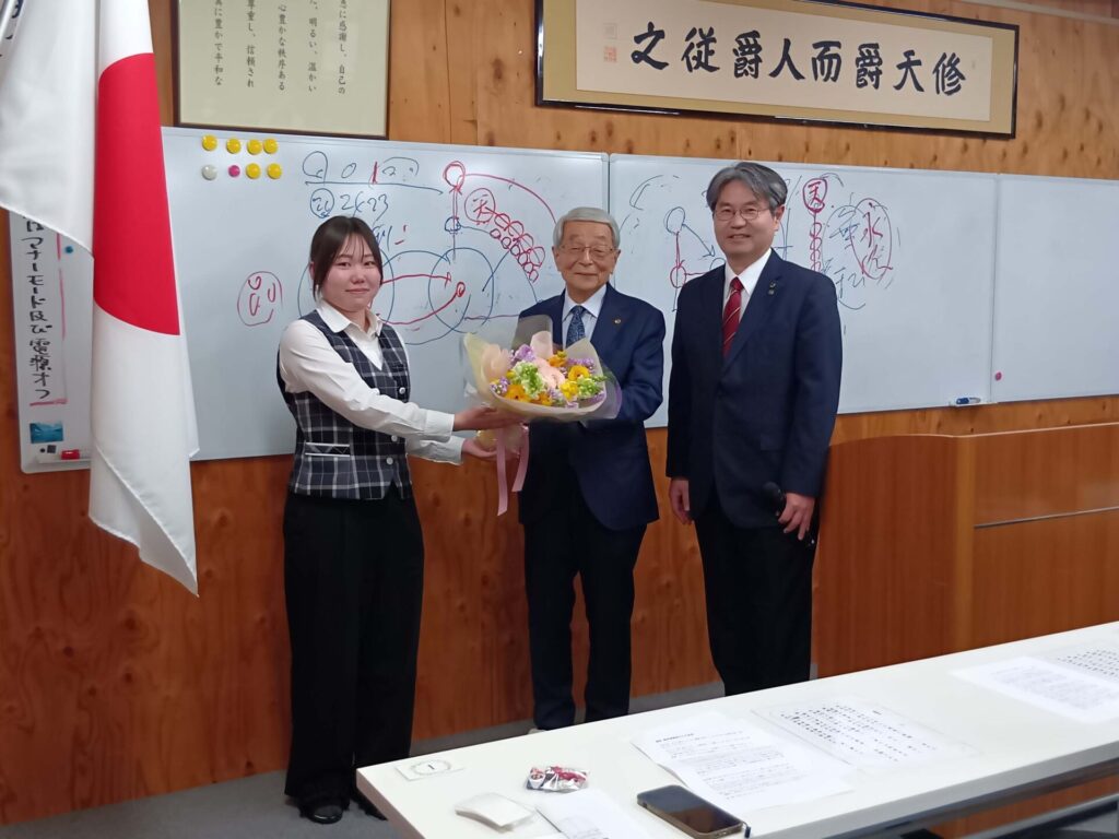 お知らせ 2026.03.23 NEW 「感謝の集い」 3月2日(月)、東濃森の国モラロジー事務所では、毎月開催している「感謝の集い」を実施いたしました。今回は、講師としてお招きしてきた岩田啓成先生をお迎えする最後の会となりました。岩田先生には長年にわたりご指導いただき、心より感謝申し上げます。 受講の様子 岩田先生に感謝の花束